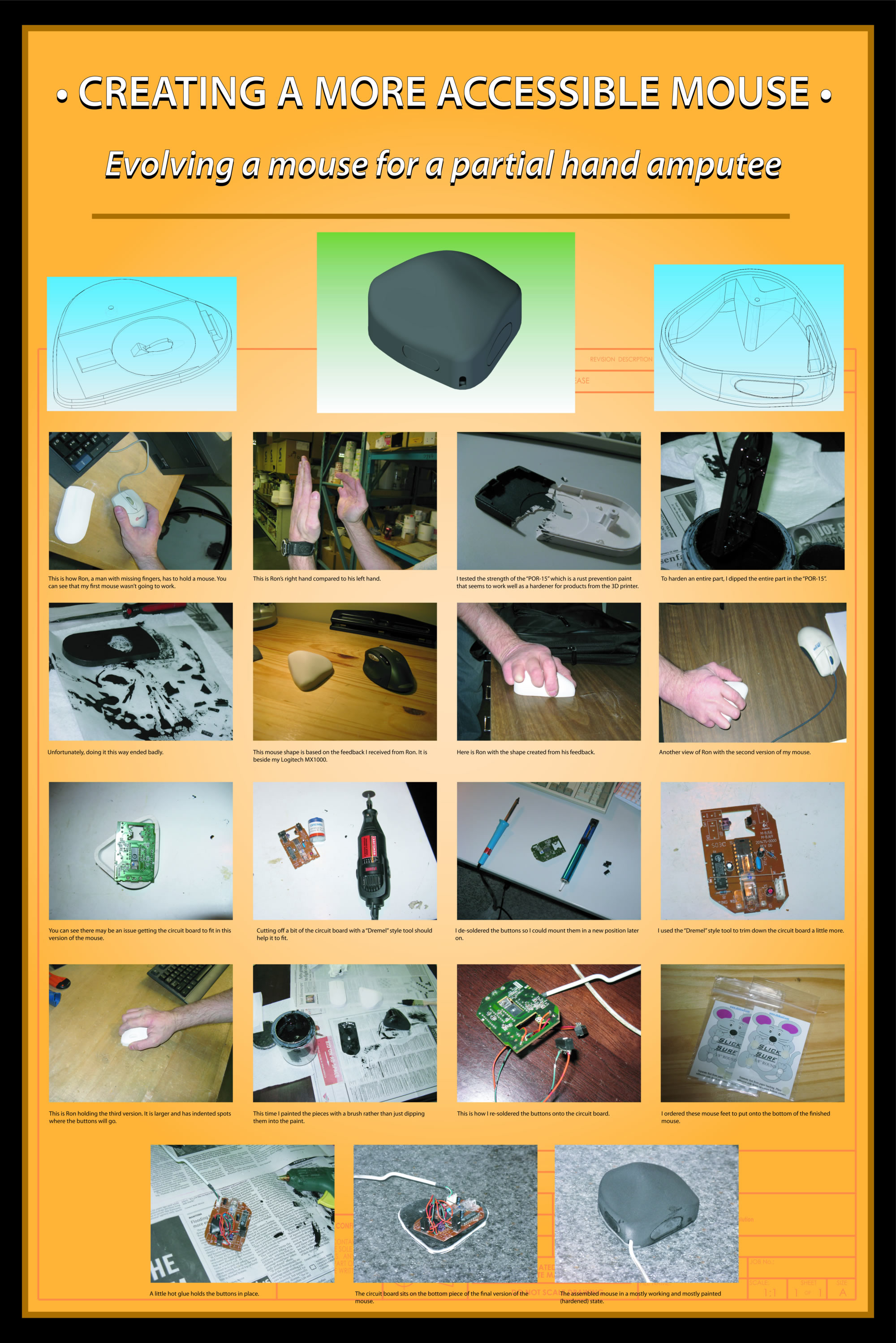 During high school, I had access to a Spectrum Z510 3D printer as part of the drafting and design classes. In my final year, I had the option to participate in a district scholarship competition. I elected to participate and take full advantage of the ability to rapidly prototype physical objects by designing a mouse that would be accessible for a friend of mine with a partial hand amputation.