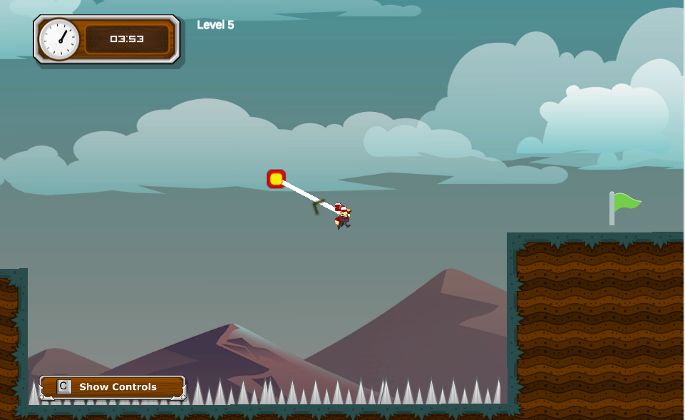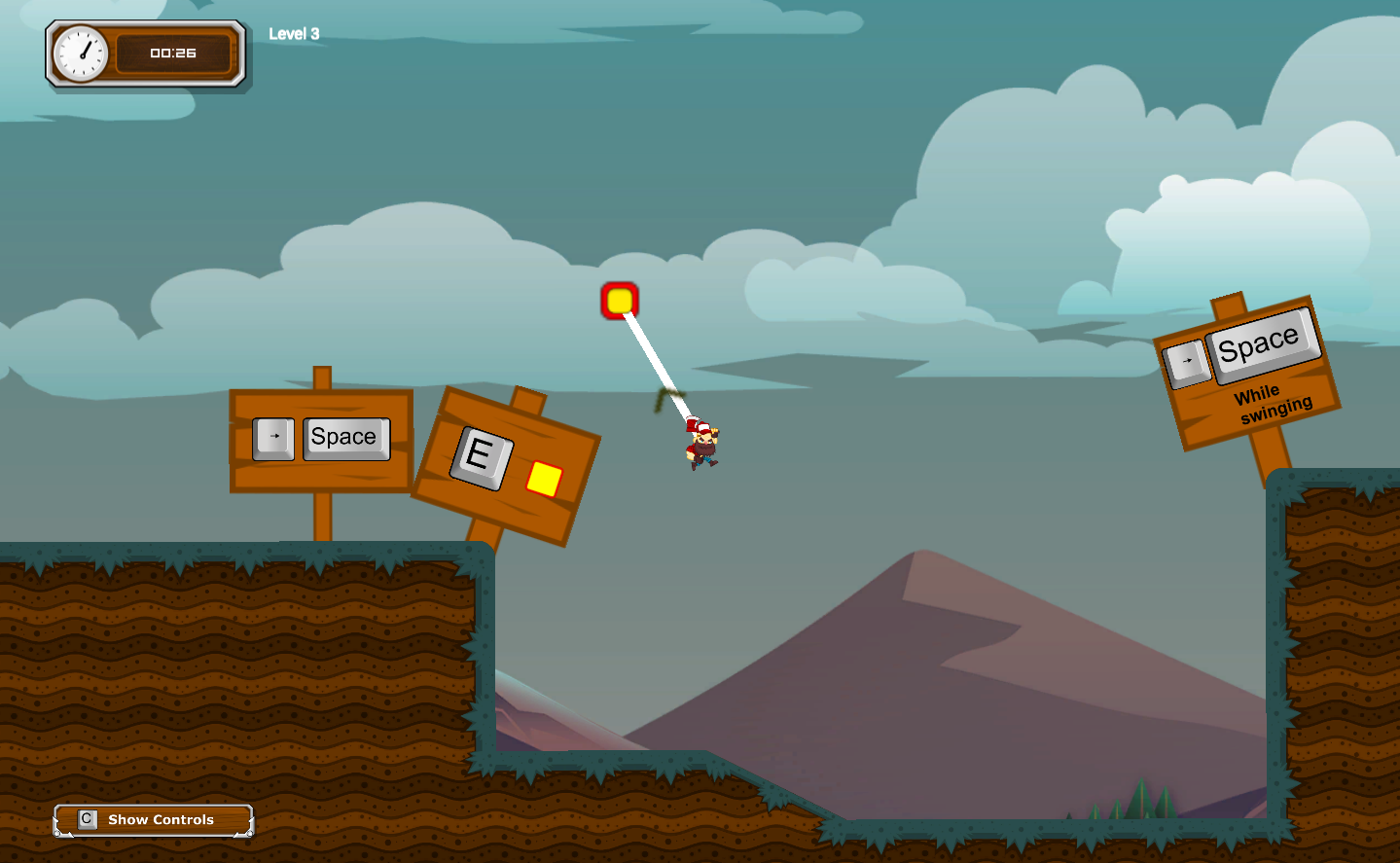 Run, jump and swing your way through various levels. Watch out for obstacles and try to finish as many levels as you can before time runs out!