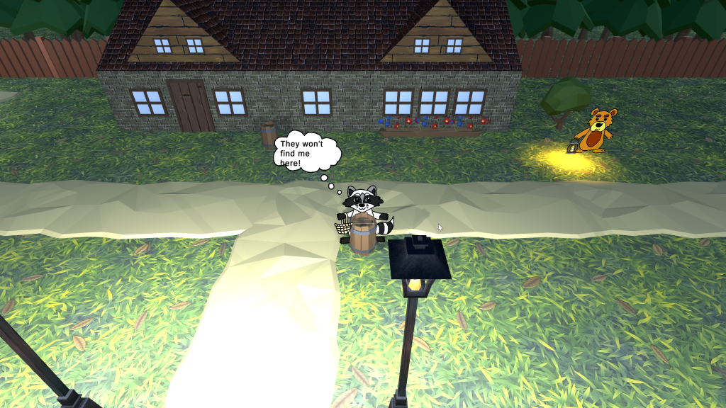 One man's treasure is another panda's trash. You are a raccoon who has dropped out of adventuring school. For revenge, you are now plotting to take your neighbor's treasures. Don't get caught!